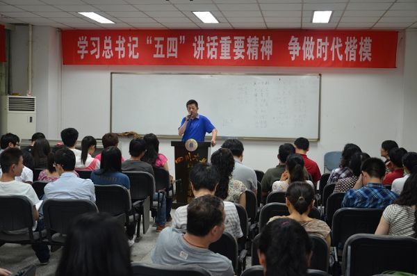 会上,蒋斌书记组织大家认真学习了胡锦涛总书记“在纪念中国共产主义青年团成立90周年大会上的讲话”的重要精神,号召全院师生以“兴家强国”为己任,按照总书记五个“必须”要求,做到五个“坚持”,把五四精神和雷锋精神贯彻始终,在自己的岗位上认真负责、一心为公、关心他人,“为党和人民事业坚韧不拔开拓进取”,为实现学院十二五规划目标一起努力奋斗,争做事业的标兵,时代的楷模。