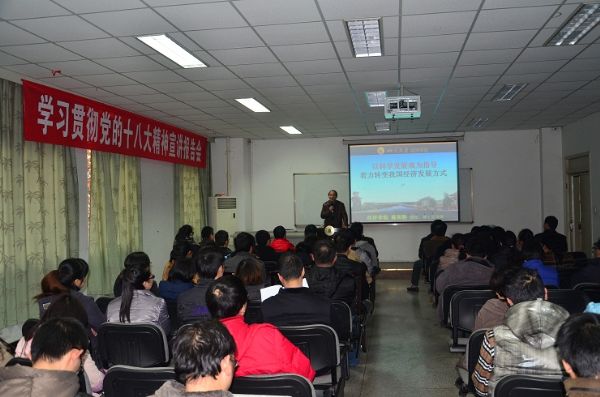 12月11日下午4点30分,必赢线路检测中心深入学习贯彻党的十八大精神宣讲报告会在基础教学楼A303会议室举行。此次报告会主讲人是来自学校十八大精神宣讲团成员、经济学院博士生导师蒋和胜教授,报告主题为“以科学发展观为指导,着力转变我国经济发展方式”。报告会由党委书记蒋斌主持。我院在校院领导、两委委员、各系、教研室主任、工会主席、工会委员、科级干部、 全体在校教工党员、学生党员代表参加了报告会。