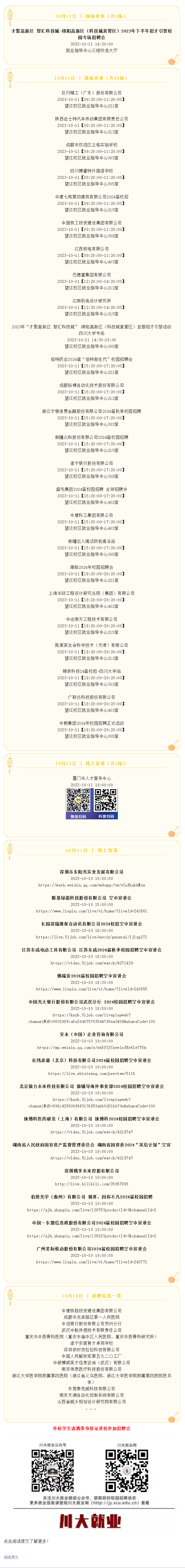 10月11日现场双选一览